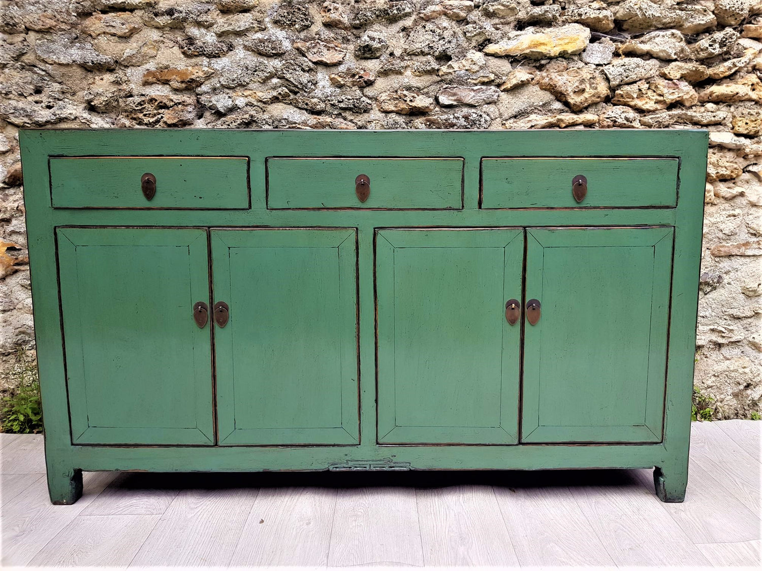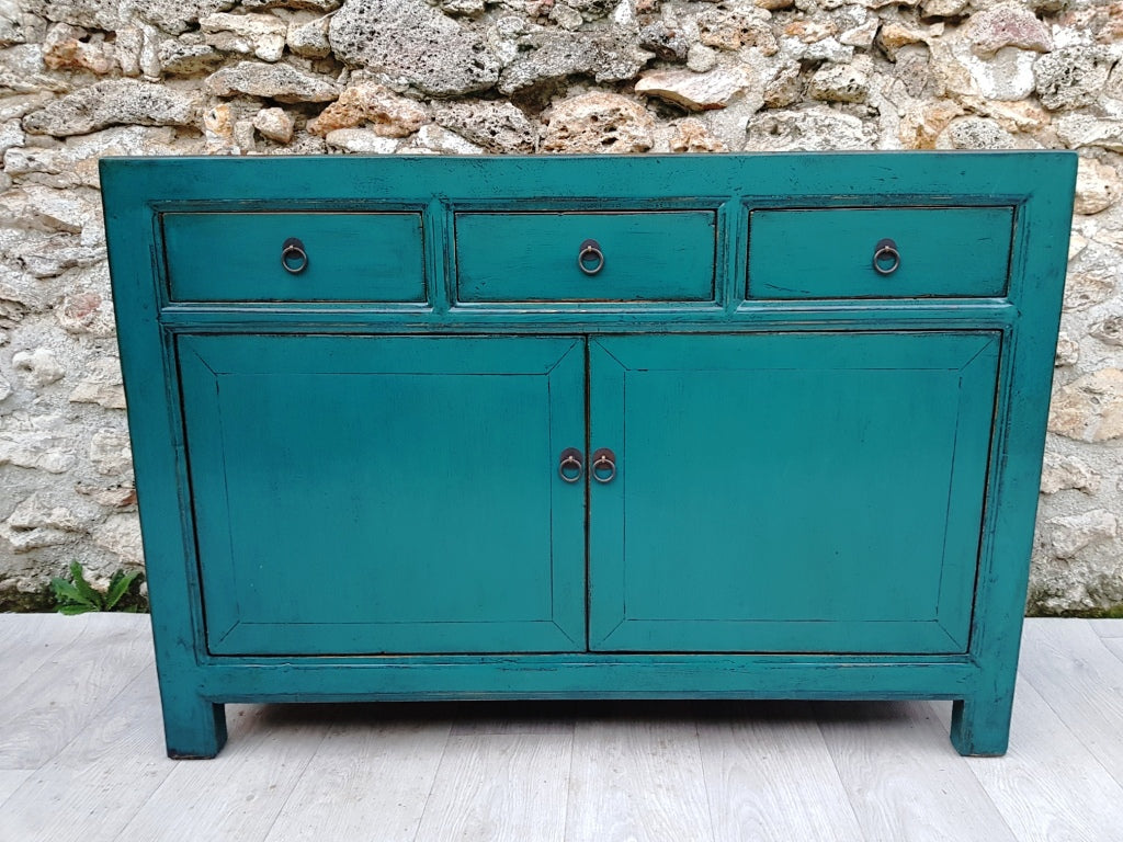 For 19 years our choice has focused on furniture entirely handmade in workshops of craftsmen in China (provinces of Shandong and Hebei) with real know-how in cabinetmaking, patinas and lacquers. . The pieces we offer can be either old furniture restored and repatinated in contemporary color shades, or recent furniture with the same cabinetmaking techniques, patinas and lacquered finishes, respecting an artisanal assembly by tenons and mortises. Solid wood is in the spotlight (elm, cypress, etc.). Everything being handmade, small imperfections may appear here and there on the furniture.